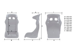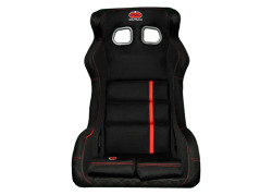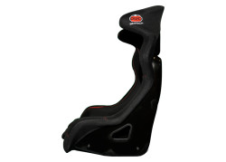 Racing seat with tubular steel frame medium height side bolsters fully upholstered in light padded velour removable leg cushion, 5 seat belt openings (Hans compatible) side or bottom mounted (Y and W types). Size XL.
