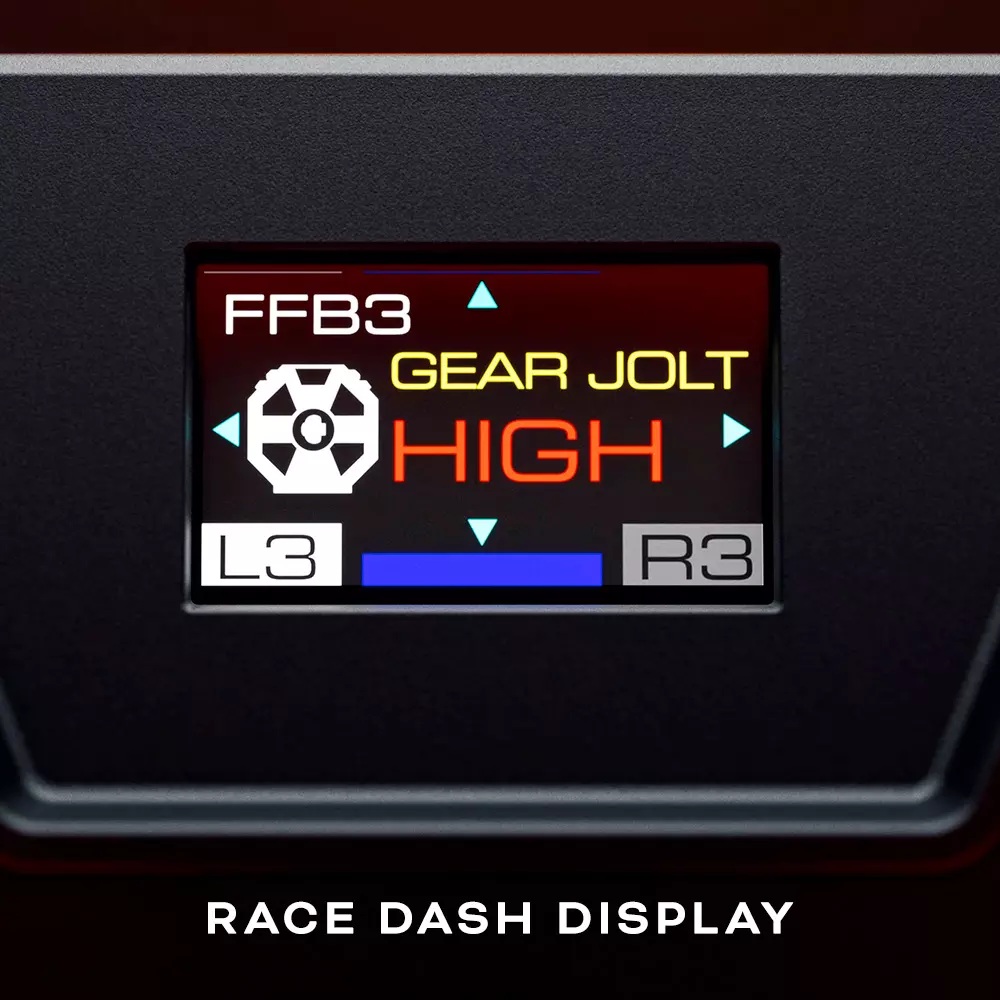 The 5Nm of constant torque has an overshoot capability to massively increase your power and deliver super-boosted effects with an ultra-low 5ms latency. HARMONY technology generates high-frequency vibrations to feel all the game physics in the smallest details. Soundtracks and the screeching of tires have never felt so impactful.RACE DASH SCREEN